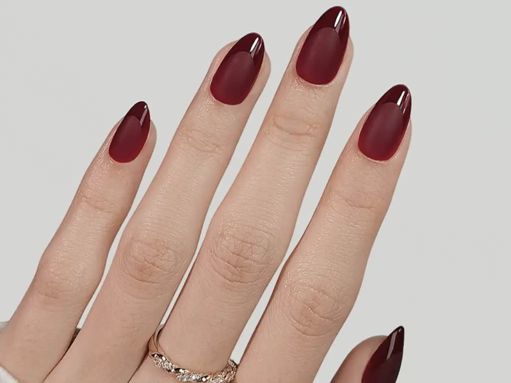 Elevate your holiday style with these Christmas Wine Color Matte French Press On Nails. The design features a deep, festive wine-red tip on a soft matte nude base, offering a modern and sophisticated twist on the classic French manicure. Perfect for Christmas parties and gatherings, this elegant and understated design provides a luxurious salon-quality look in minutes. Easy to apply and reusable, they are the effortless and chic accessory to complete your festive ensemble.